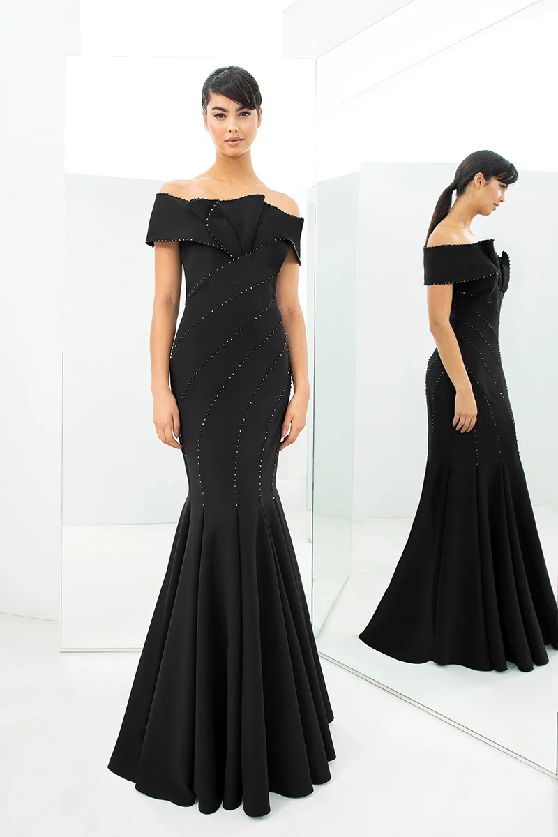 Look stunning and feel confident wearing the Alexander by Daymor Dress 1359. This beautiful mermaid silhouette features a sleek and sexy design with an off-the-shoulder neckline, and short sleeves. An intricate beading detail adorns the bodice while a pleated skirt adds sophisticated elegance to the look. The zipper back closure keeps you secure and comfortable while the asymmetrical sweep train gives off a dramatic flair. For extraordinary moments in luxurious satin fabric, choose the Alexander by Daymor Dress 1359 for your special evening occasion.